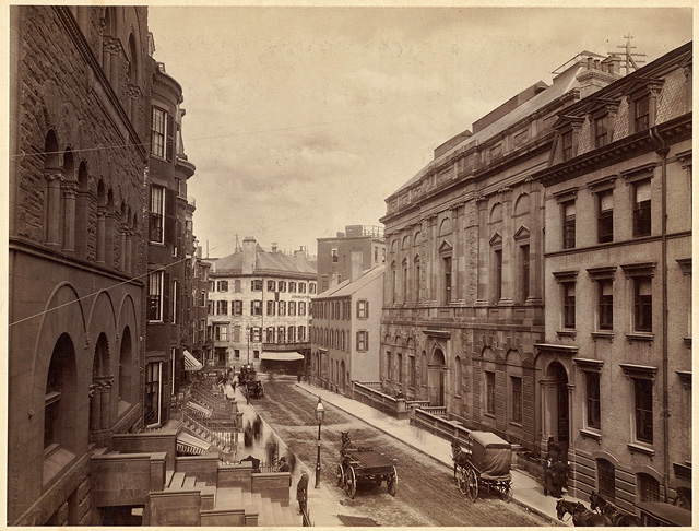 Beacon Street was known as the social, yet very snobbish street to live on. It was on the “better” or more fashionable waterside of Back Bay, which explains why it was the “old rich.” Not following me? Pretty much, they got first pick. When the new rich came along they began residing on Commonwealth. Beacon Street was very desirable in the 1870’s for similar reasons it is today. The beautiful Charles River Views to the north, and the generous sunlight on the Southern facing front of the buildings. The negatives back then were the mudflats and sewage that came with the Charles River breeze.