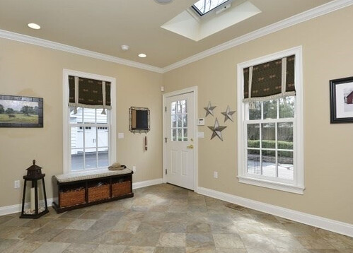 If possible, your mudroom should have a combination of natural and artificial lighting. For smaller mudrooms with plenty of window space, natural lighting may be enough to illuminate the space during the day. Consider adding decorative window treatments that will provide privacy and design appeal, such as Roman shades or wood blinds, a large selection of which are available at TheShadeStore.com. As many mudrooms double as laundry rooms, install artificial lighting for night use. Consider a traditional ceiling globe to light up the entire space.
