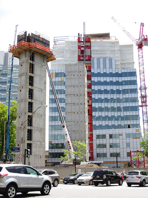 With its teaching hospitals, medical schools, and research laboratories, Longwood Medical Area has consistently been a magnet for new development and employment growth. The recent opening of Longwood Center–an iconic laboratory and office space–and ongoing construction of Brigham and Women’s Hospital’s Building for the Future are a couple examples of the large new developments going up around the hospitals. However, offices and labs are not the only buildings going up.
