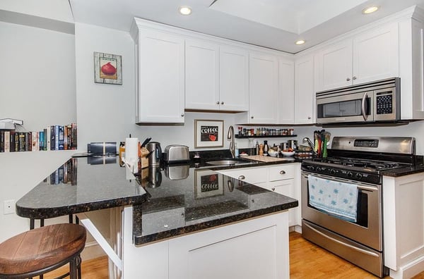 North End/Waterfront Gem. Look no further – this completely renovated bi-level condo has it all – 2 BRs & 2 Baths. Step into a brand new high-end kitchen with custom-made cabinets, beautiful granite countertops & SS appliances. Beautiful cherry HW floors throughout. Family room leads to a beautiful patio perfect for summer grilling. Full staircase leads to the other level of living space which is complete with a king size master, guest bedroom & another marble half bath. W/D just outside second bedroom. As well as private storage space. Building is professionally managed – condo fees include heat & hot water. Perfectly situated just a few steps away from the waterfront as well as Hanover Street.