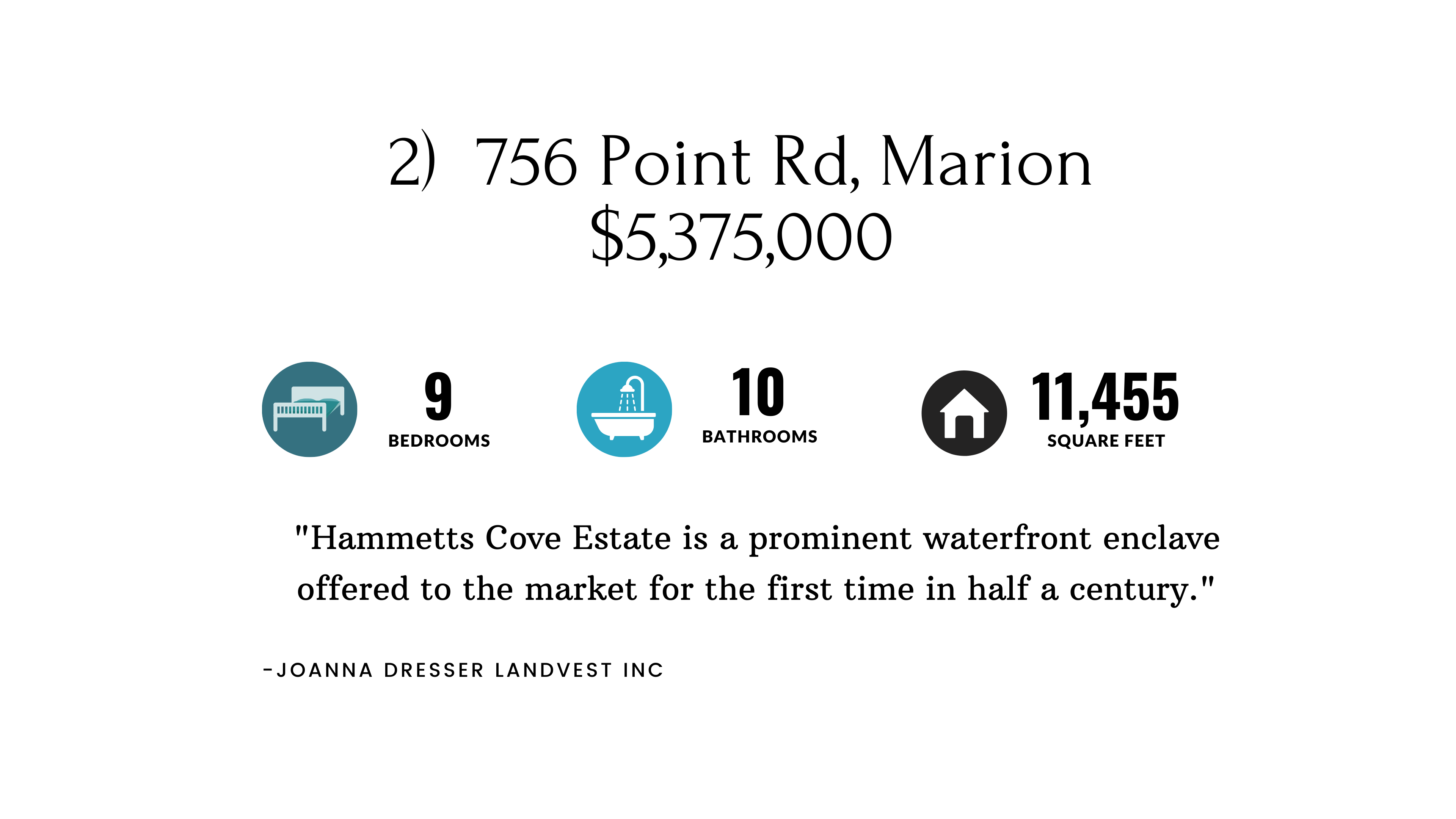 Old world charm coupled with grandiose scenery is the perfect way to describe this stunning property. The open floor plan forms a harmonious flow from the living room, to the dining room, to the family room– it is the quintessential home for entertaining. It’s also the ideal home to enjoy during any of the four seasons; 8 fireplaces, a light-filled sunroom, and a 3-bay garage to store boats, sails, paddleboards, and kayaks. Relish in the cozy ambiance during the winter months while engaging in a multitude of water sports during the summer. You are guaranteed to find adventure at Hammetts Cove Estate all year long.