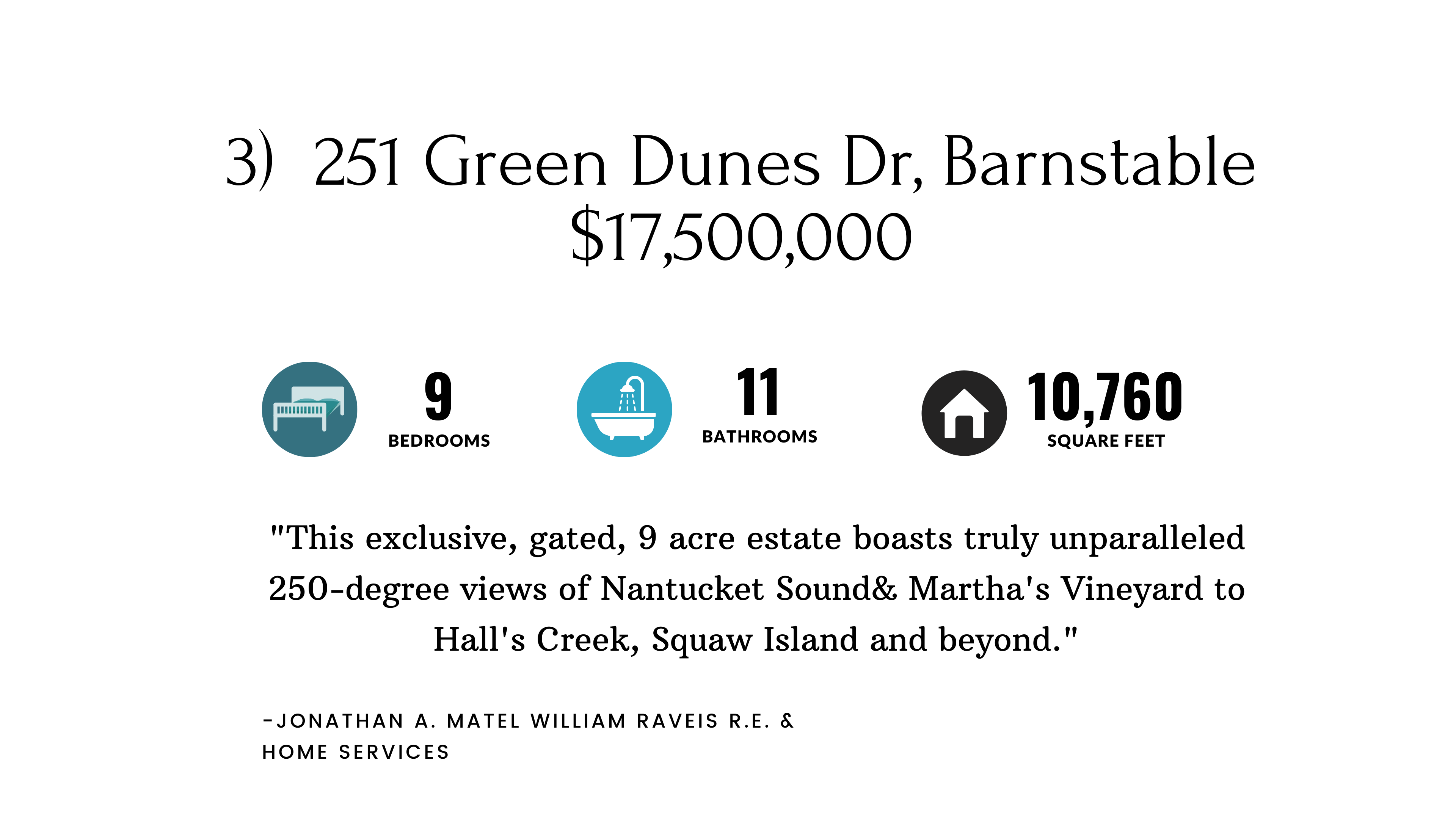 Want your own private sandy beach, indoor pool, and separate quarters for the caretakers? This traditional New England style home checks all the boxes. Nestled in one of the most sought after areas of Cape Cod, the West Hyannisport property features views overlooking scenic Squaw Island where JFK and his family often vacationed. The gorgeous interior radiates elegance and sophistication with its spotless design and striking visual elements, including a 40-foot tower and 3 story rotunda. This award-winning home is one of the finest on all of Cape Cod and one of the most exclusive waterfront homes for sale in Massachusetts.