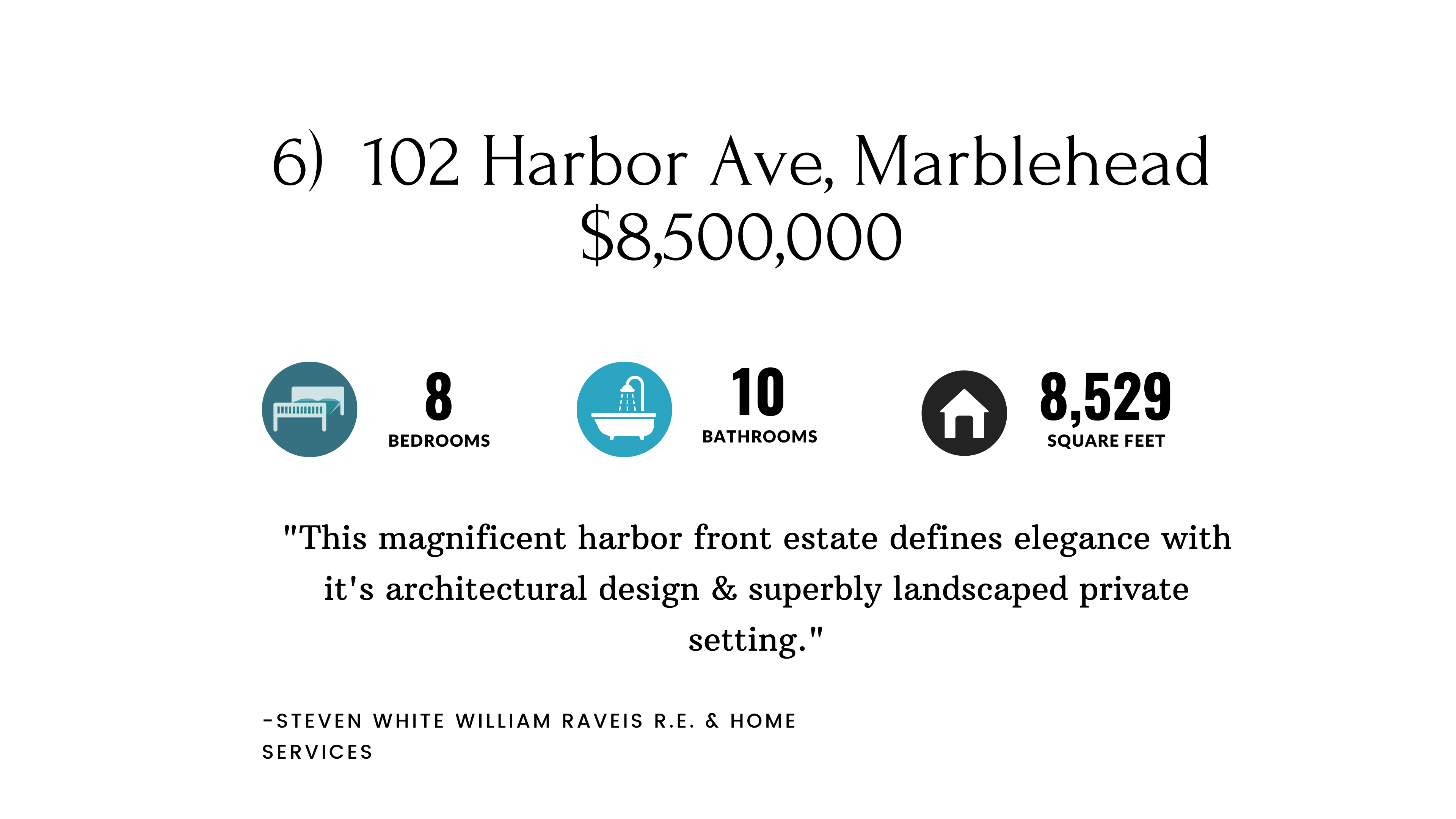 Privately nestled in a serene setting surrounded by 1.65 acres of harborside gardens, this home boasts 18 rooms across more than 8,000 square feet. The design seamlessly features old world charm with modern flair by maintaining some of the original craftsmanship. Most impressive is the expansive wraparound porch facing the large seaside lawn that looks out to one of the most historic and scenic harbors in Massachusetts. A tennis court, swimming pool, and a deep water dock complete these magnificent grounds.