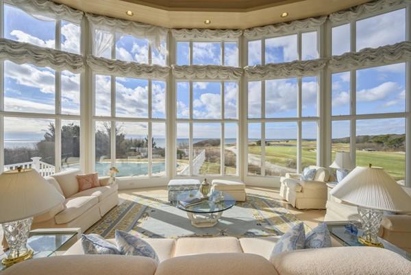 Natural sunlight floods every corner of this oceanfront gem with its towering wall of windows overlooking the bright ocean and the New Seabury Ocean Course. Step out onto your own private beach, enjoy the vivid sunsets, or take a dip in your heated waterside pool. The interior boasts a polished but effortless look that exudes luxury while also feeling cozy and snug. With its impressive views of Nantucket Sound from Hyannis Port to Martha’s Vineyard, this home offers a sensational setting for family living and high-end entertaining. It even comes with a fully-equipped guest house for visiting family or friends.