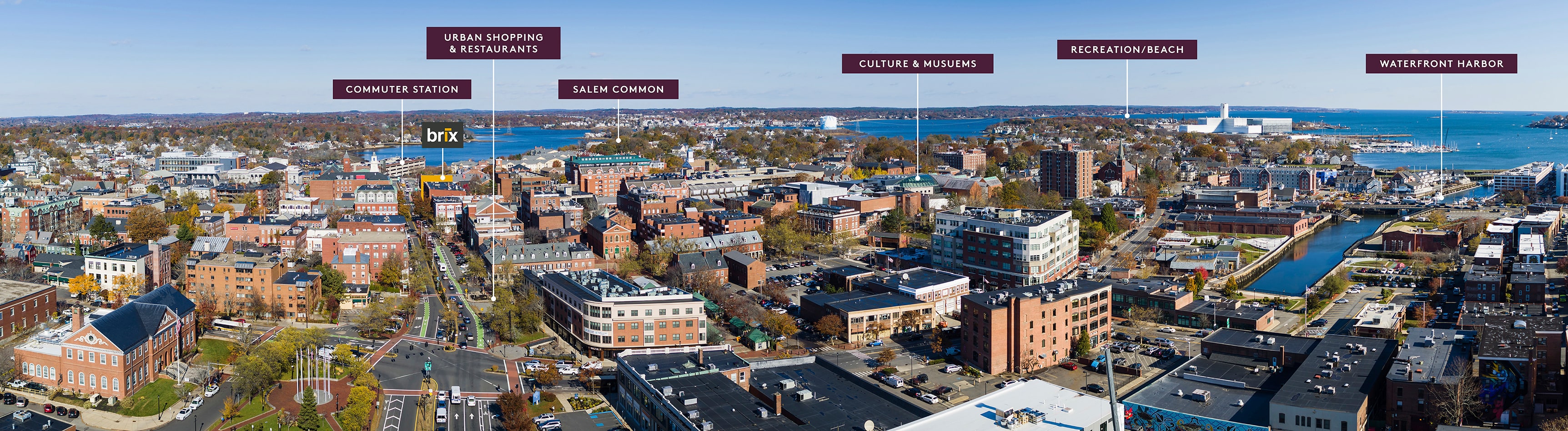 Located in beautiful downtown Salem - a city rich in history with a vibrant and walkable urban core - BRIX has everything you could want in a location. Think the best restaurants on the North Shore at your door, a short walk to the natural beauty of the Salem waterfront harbor and beaches, premier institutions like the Peabody Essex Museum around the corner, and an abundance of open space and parks. Plus quick access to transit for a fast, easy commute to downtown Boston and elsewhere.