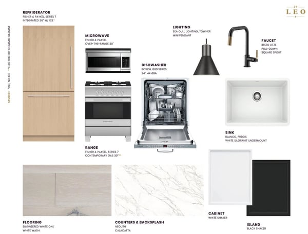 Let elegance surround you while cooking or entertaining. Modern white and black shaker cabinets are complimented perfectly by Sicilian Calacatta quartz countertops and slab backsplash. The matte black and brass on the pendant lights, faucets, and handles tie it all together. And the high-end Fisher Paykel & Bosch appliances make any kitchen task a breeze.